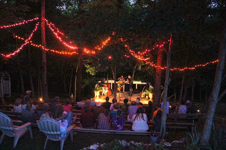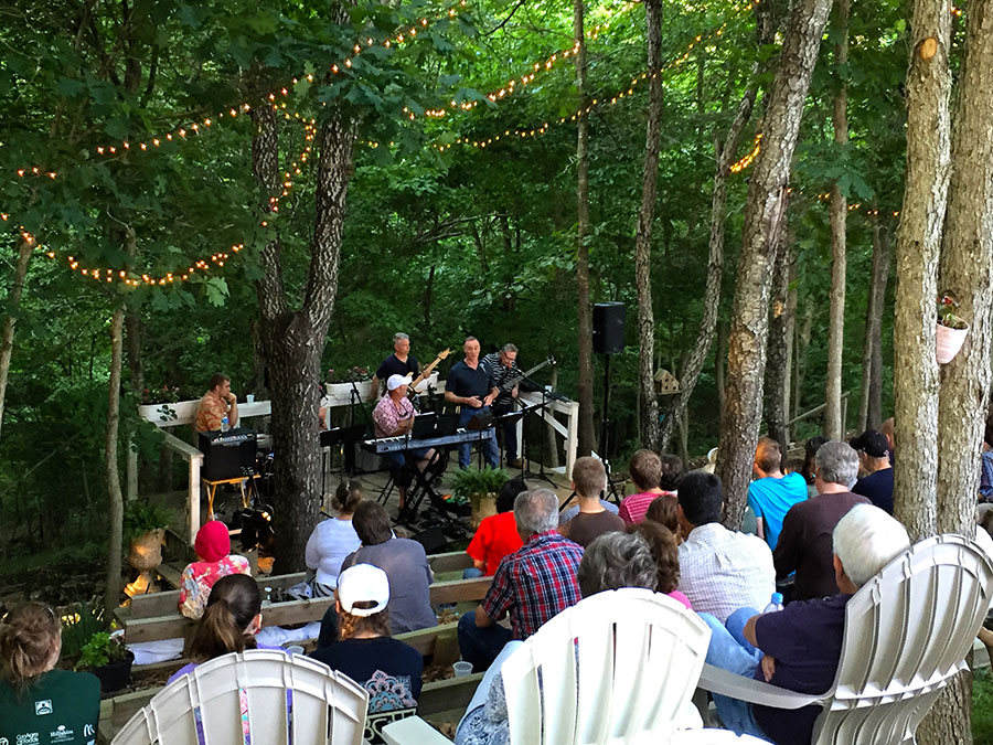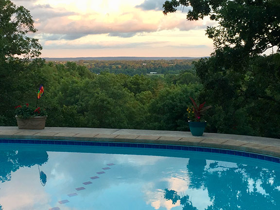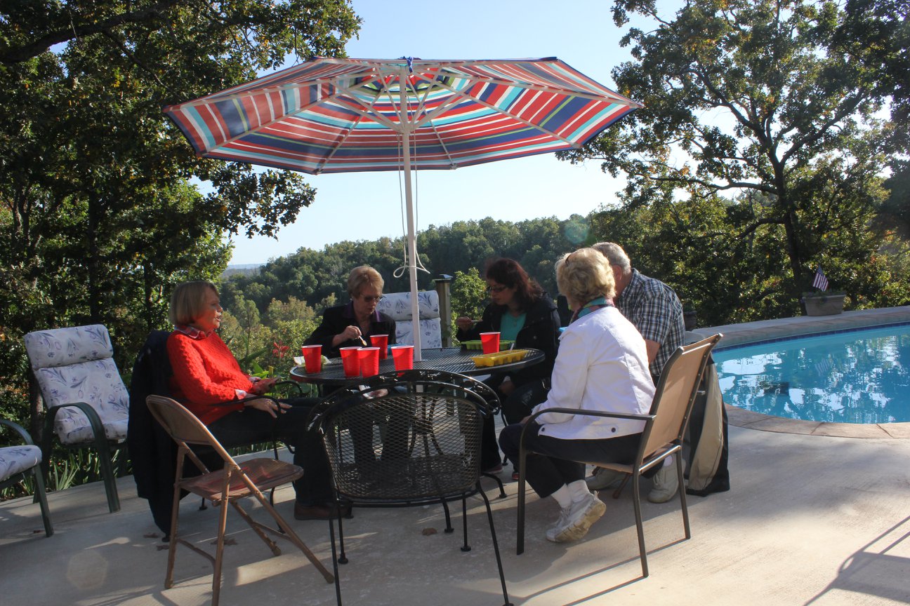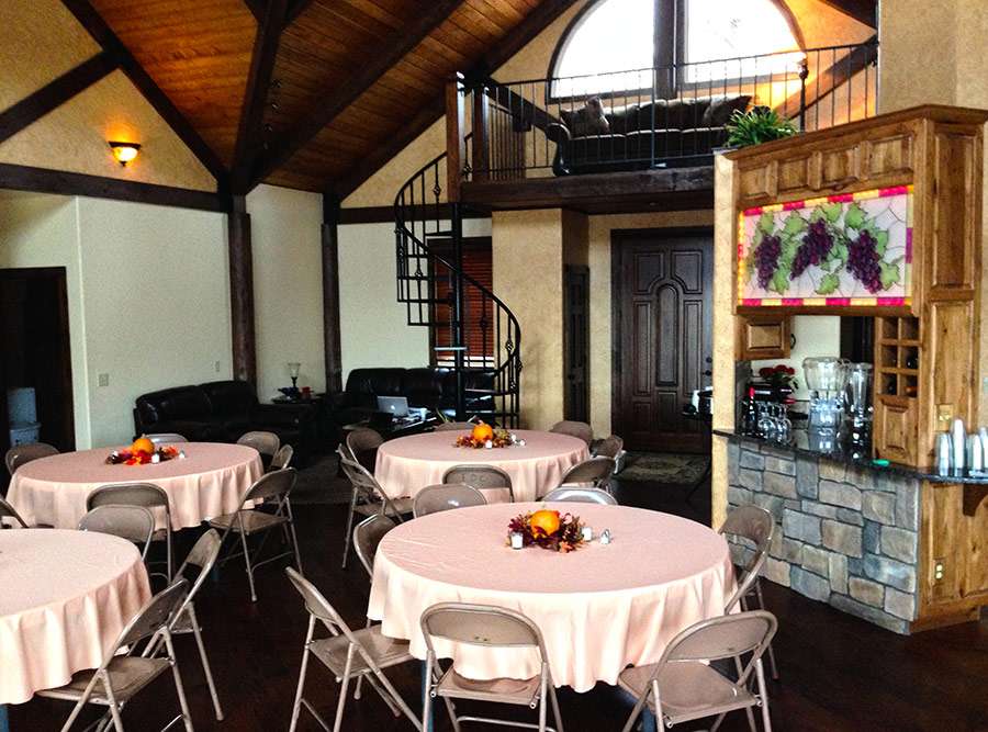 Timber Ridge Lodge has been used over the years as a venue for a wide variety of gatherings, both outdoor and indoor. The outdoor amphitheater which can seat up to 125 people has been used for things such as weddings, concerts, and Easter sunrise services. The 10′ x 16′ lighted stage situated down in a picturesque wooded hollow has excellent acoustic qualities that can be enhanced with on site sound equipment. Other areas of the property have been utilized for chili cook-off contests, barbecues and cookouts, as well as pool parties in the 18′ x 36′ in ground pool with a view that overlooks the Illinois River Valley from 100 feet above it. The indoor great room and adjoining kitchen/dining room with seating for up to 75 people has been used for concerts, workshops, seminars, business strategy meetings, office parties, fundraisers and cooking classes. With tables and chairs for seating up to 50 people in the great room area with adjoining kitchen, this makes for a great and cozy dining experience for small groups.