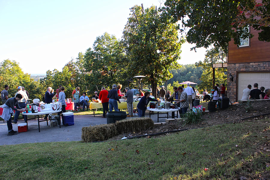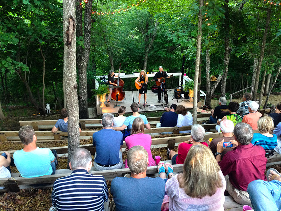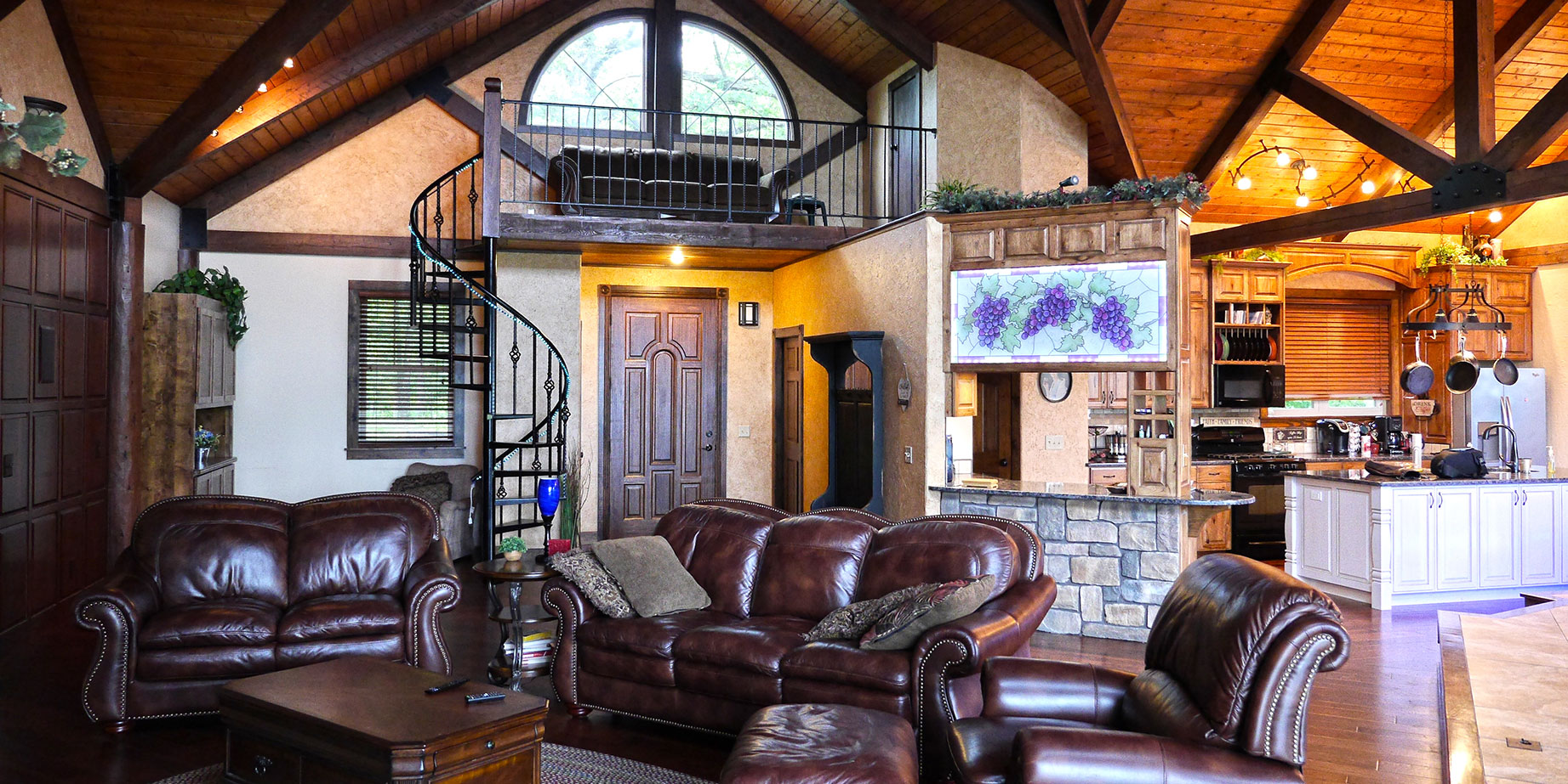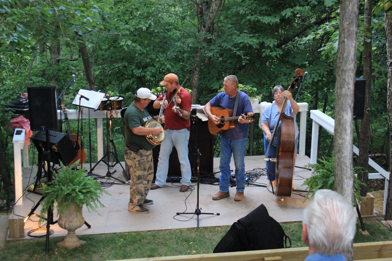 Timber Ridge Lodge has been used over the years as a venue for a wide variety of gatherings, both outdoor and indoor. The outdoor amphitheater which can seat up to 125 people has been used for things such as weddings, concerts, and Easter sunrise services. The 10′ x 16′ lighted stage situated down in a picturesque wooded hollow has excellent acoustic qualities that can be enhanced with on site sound equipment. Other areas of the property have been utilized for chili cook-off contests, barbecues and cookouts, as well as pool parties in the 18′ x 36′ in ground pool with a view that overlooks the Illinois River Valley from 100 feet above it. The indoor great room and adjoining kitchen/dining room with seating for up to 75 people has been used for concerts, workshops, seminars, business strategy meetings, office parties, fundraisers and cooking classes. With tables and chairs for seating up to 50 people in the great room area with adjoining kitchen, this makes for a great and cozy dining experience for small groups.