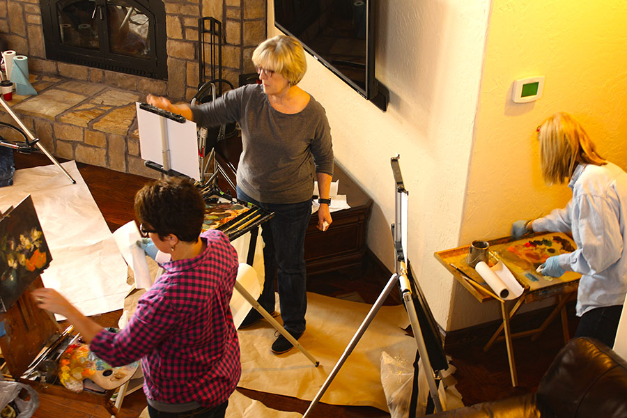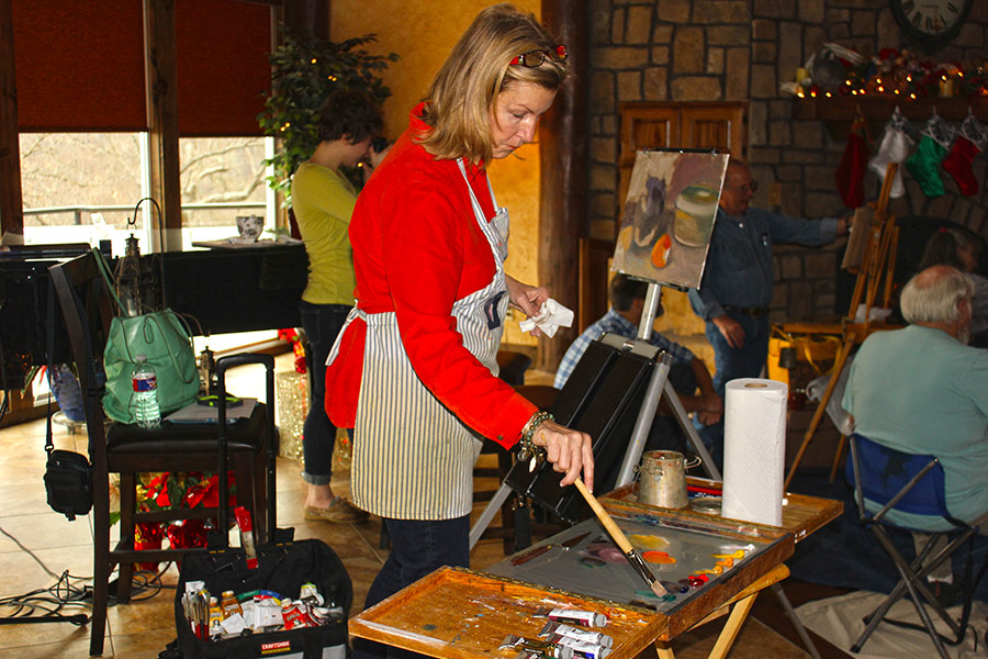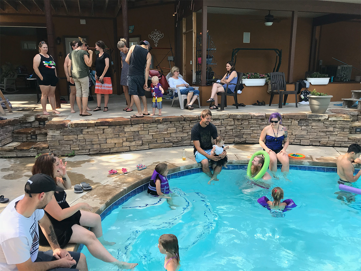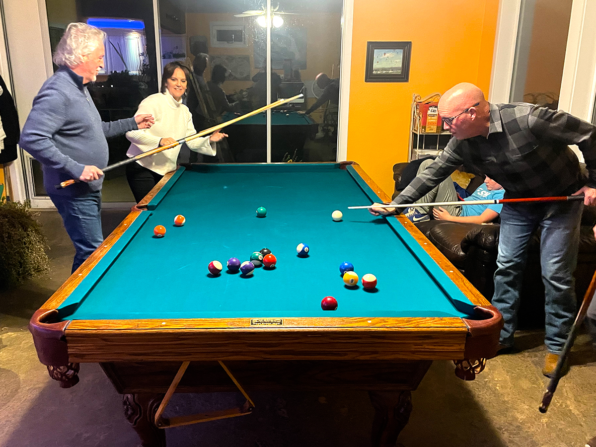 Timber Ridge Lodge is approximately 3600 sq. ft. on two levels. The main floor has two bedrooms, two bathrooms, and a full kitchen with a dining room open to an expansive great room with a grand piano and fireplace. The room is equipped with a 24 channel sound board with speakers. There is also a large screen television that can be used for presentations. Downstairs has a third bedroom and full bathroom. There is a home theater with a 10′ screen, also downstairs. The theater has internet streaming options as well as a Blueray/DVD player. It seats 12 to 15 people. Also downstairs is a recreation room with a second fully equipped kitchen, a regulation sized 9′ pool table, and a state of the art massage chair. Here are some pictures of the indoor spaces and some events happening in them: