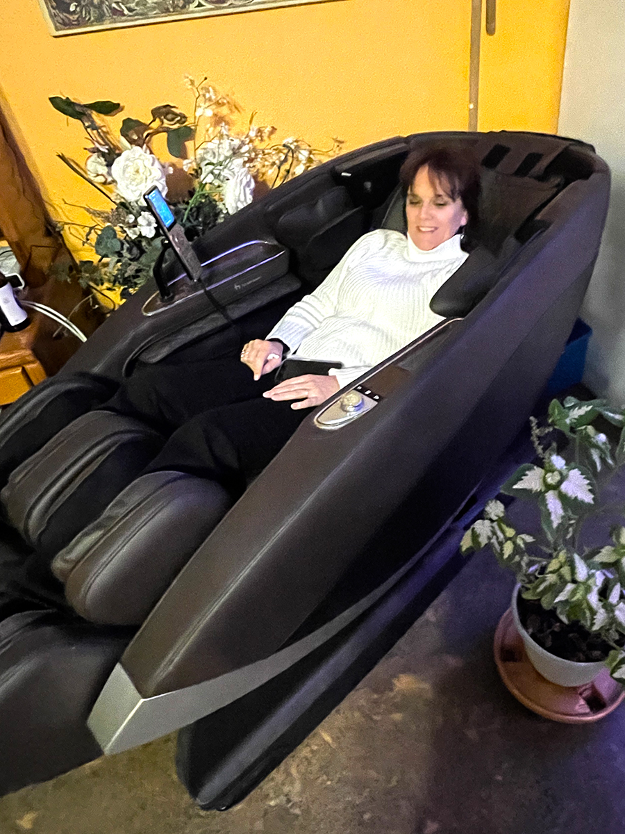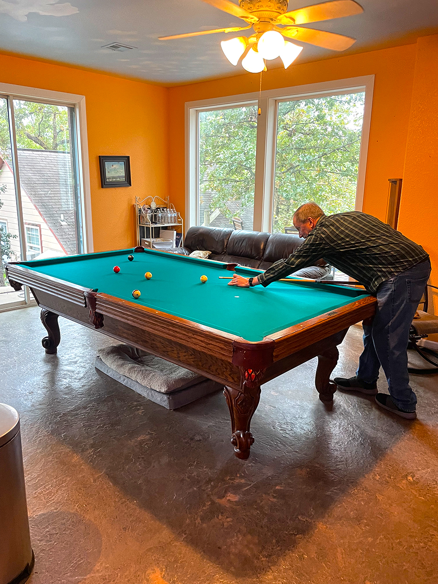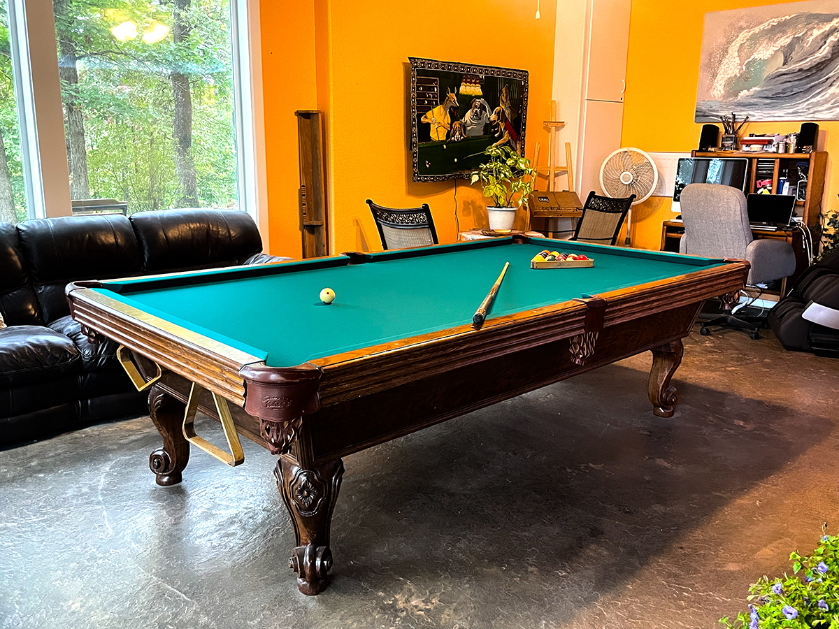 - Includes 9′ Pool Table and Massage Chair